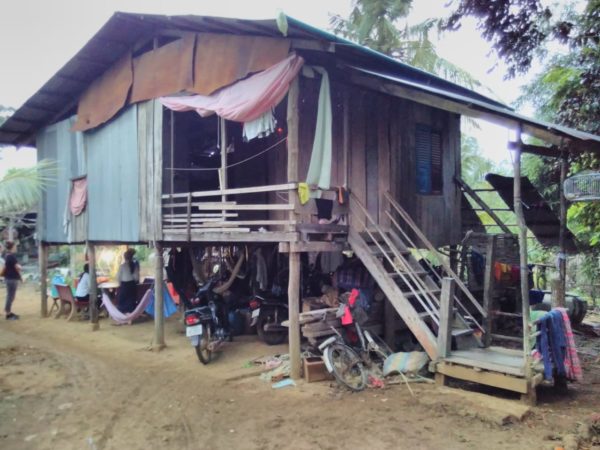 Quand Soki arrive pourtant ce matin-là, alors que la saison des pluies est aux portes du Cambodge, on l’invite à monter aussitôt. Les grands-parents sont fiers de montrer le nouveau lit des enfants : un matelas posé a même le sol en bois pour les 3 plus grands. Les deux plus jeunes partagent le vieux matelas usé, à quelques mètres de là, avec les deux adultes. C’est également l’occasion de saluer le fils défunt, dont la photo mortuaire repose sur une planche vermoulue recouverte de poussière d’encens. On s’installe malgré la chaleur et on prend des nouvelles des enfants. Quelques mots échangés entre deux sourires édentés, quand soudain un bruit lointain résonne. Le tambourinement de la pluie contre le métal. Les maisons des moins à plaindre, dont le toit est fait de tôle, servent d’alerte au reste du village.