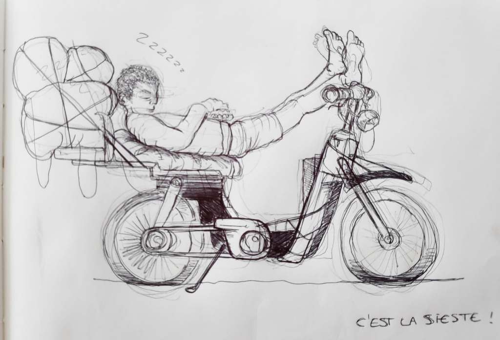 En Afrique, la sieste est intégrée à la journée. C’est une pause, certes, mais qui n’empêche pas de travailler ! Sur les marchés couverts, les marchands pioncent le nez dans les sacs de café, sur les piles de tissus ou entre les visières de vache. Cependant, ne pensez pas que c’est un frein à la vente. Dormant d’un œil, le commerçant s’éveillera au moindre bruissement de billets, à la moindre occasion de négocier. Je soupçonne même les plus entraînés de conclure des ventes sans vraiment s’éveiller.
